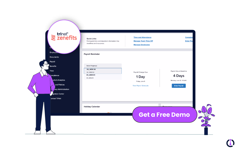 Zenefits, now known as TriNet HR Platform, is a cloud-based solution recognized for its all-in-one HR solution. Ideal for small and medium-sized businesses (SMBs), this platform focuses on performance management, benefit administration, compliance tools, time tracking, employee self-service benefits, and payroll processing.